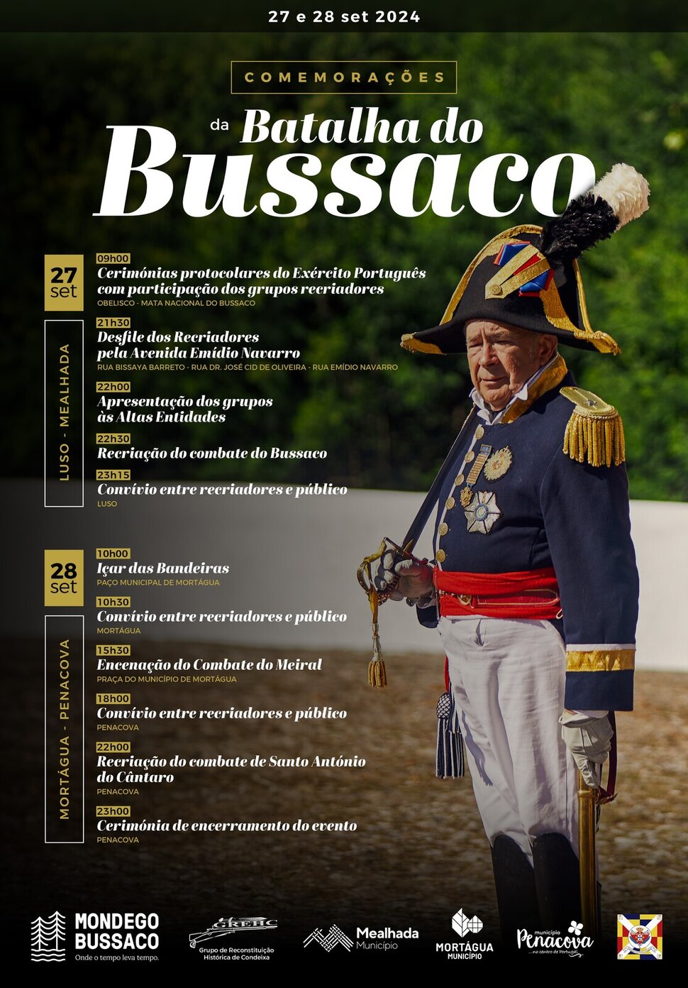 9h00 – Cerimónias protocolares do Exército Português com participação dos grupos recriadores, junto ao Obelisco – Mata Nacional do Bussaco