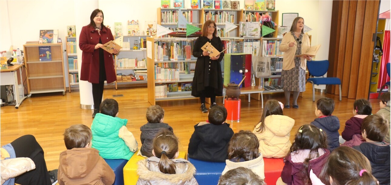 Todas as crianças do Pré-Escolar e 1º Ciclo do Agrupamento de Escolas, e do Pré-Escolar do Jardim-Escola João de Deus assistiram a uma história escolhida por cada um dos municípios.