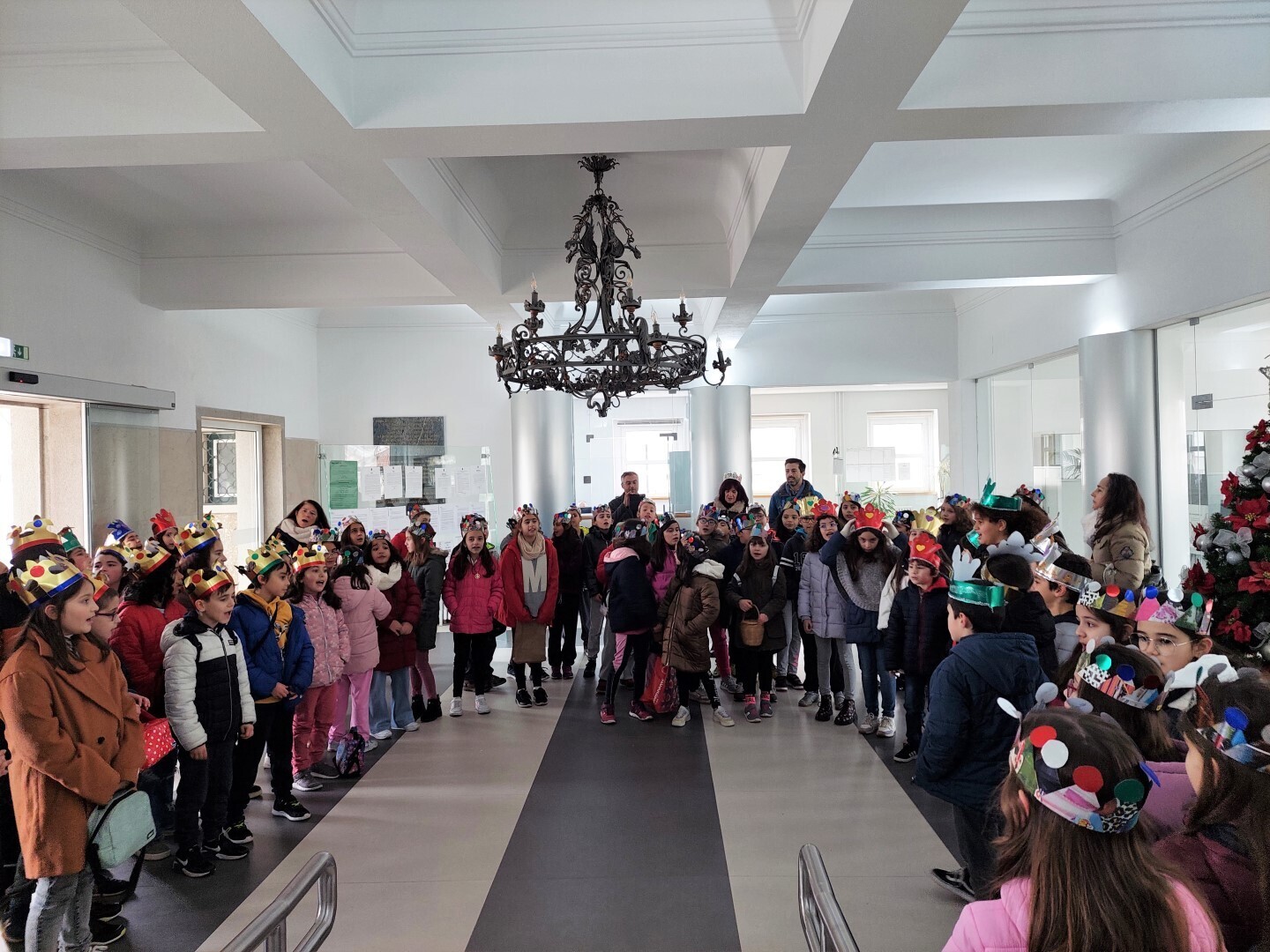 Acompanhadas pelos Professores, pelas Educadoras e Auxiliares, as crianças ostentaram as tradicionais coroas nas suas cabeças, alusivas aos Reis Magos, e mostraram-se muito afinadas nas vozes.