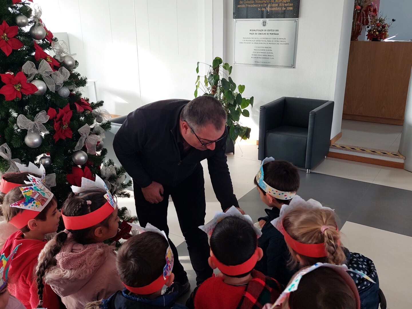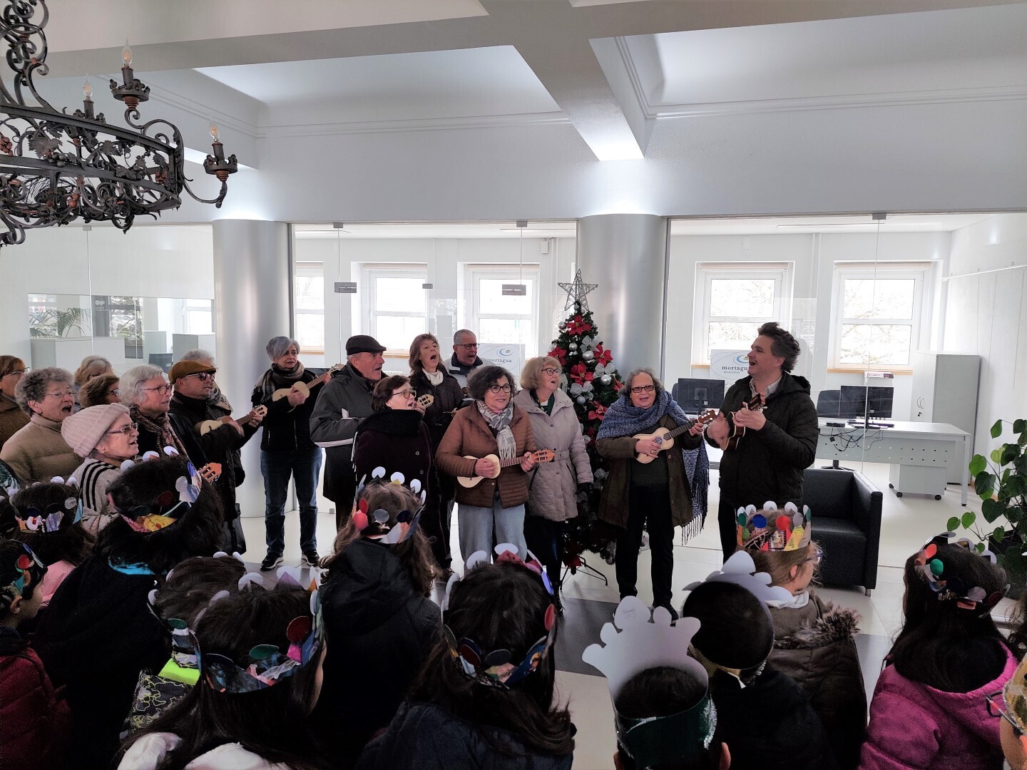 Alunos do Agrupamento de Escolas de Mortágua (4º ano), do Jardim Escola João de Deus, e utentes das várias valências da Santa Casa da Misericórdia de Mortágua (crianças e idosos), deslocaram-se aos Paços do Concelho e brindaram o Presidente da Câmara, Vereadores e Funcionários com o tradicional Cantar das Janeiras.