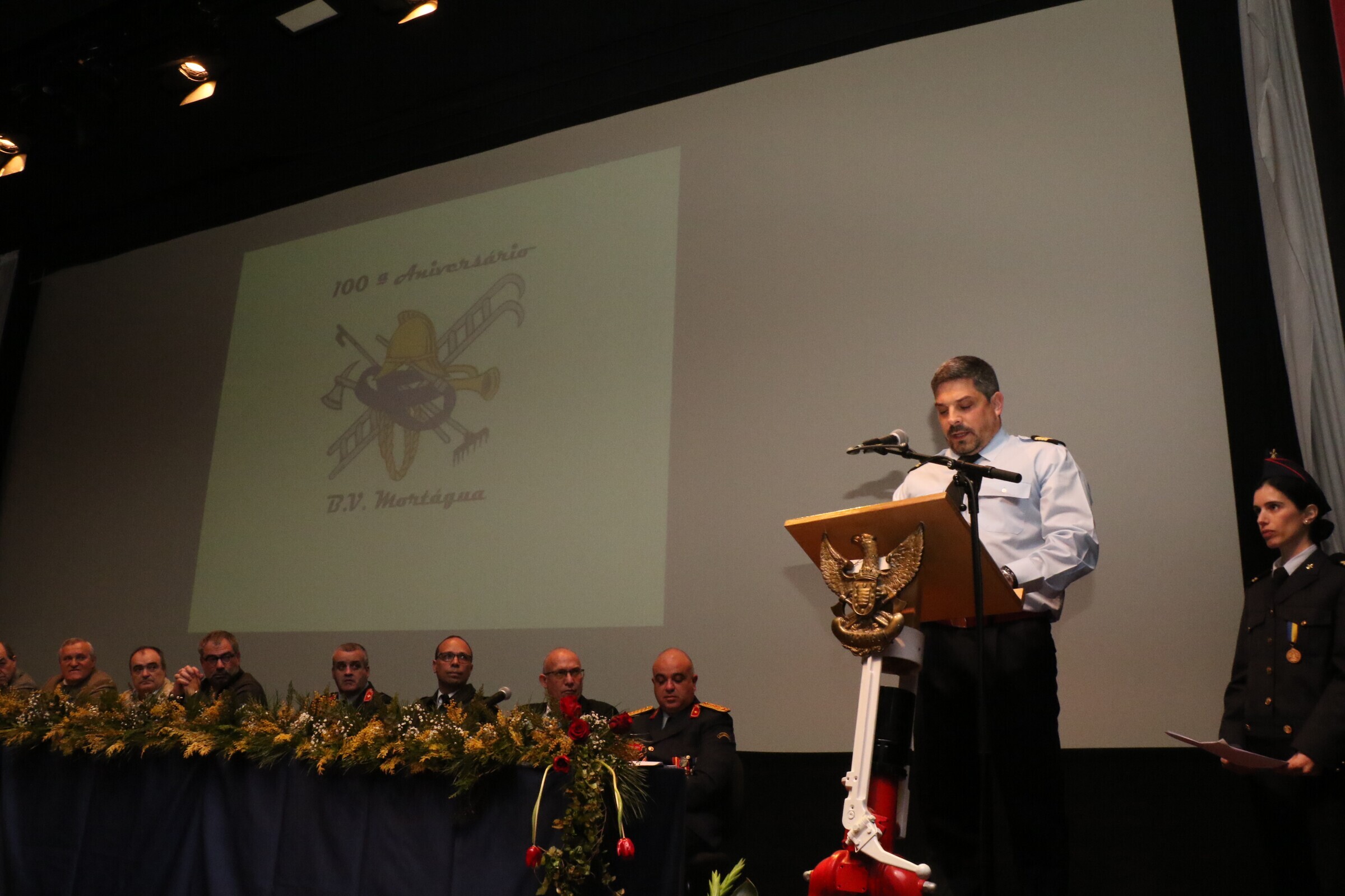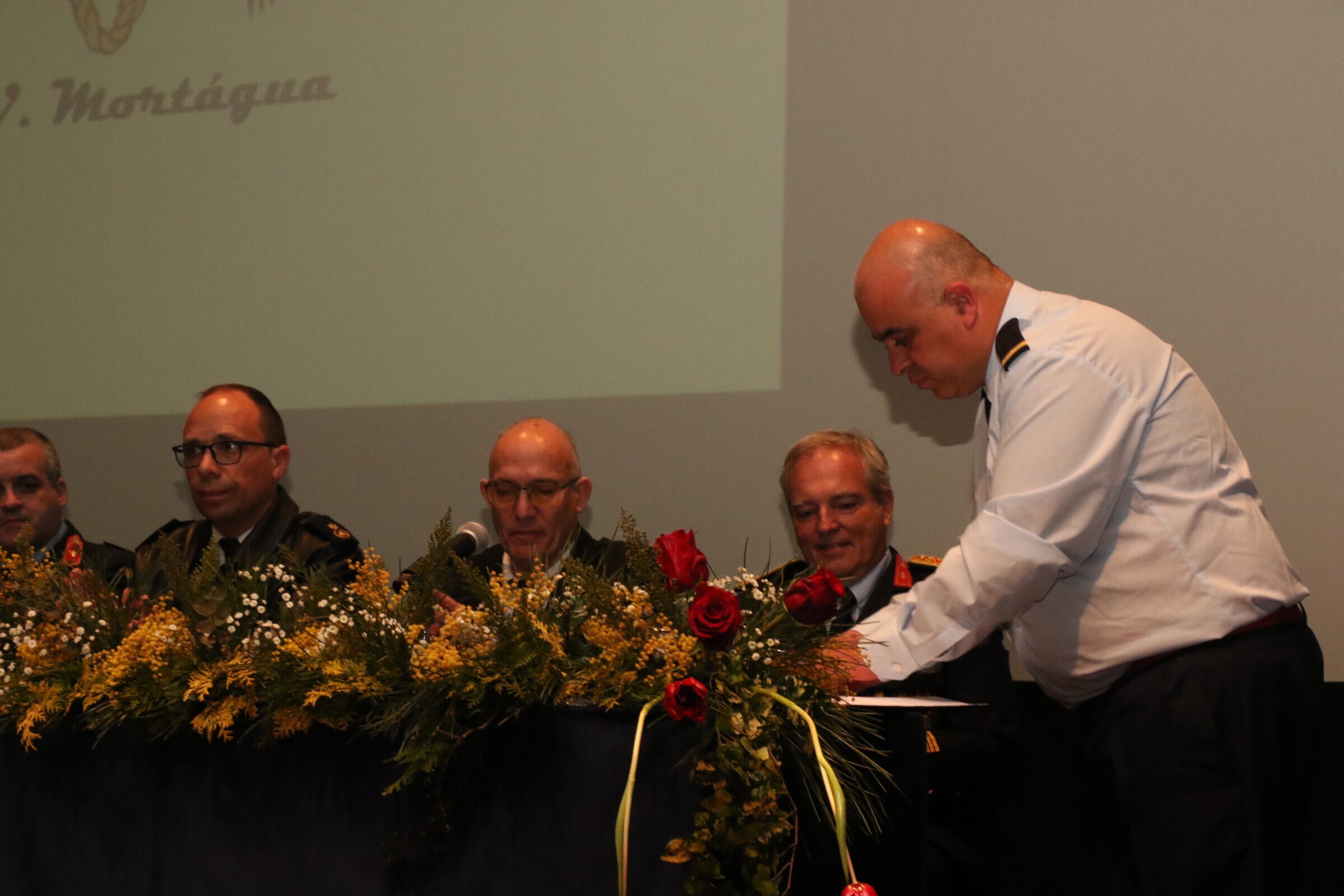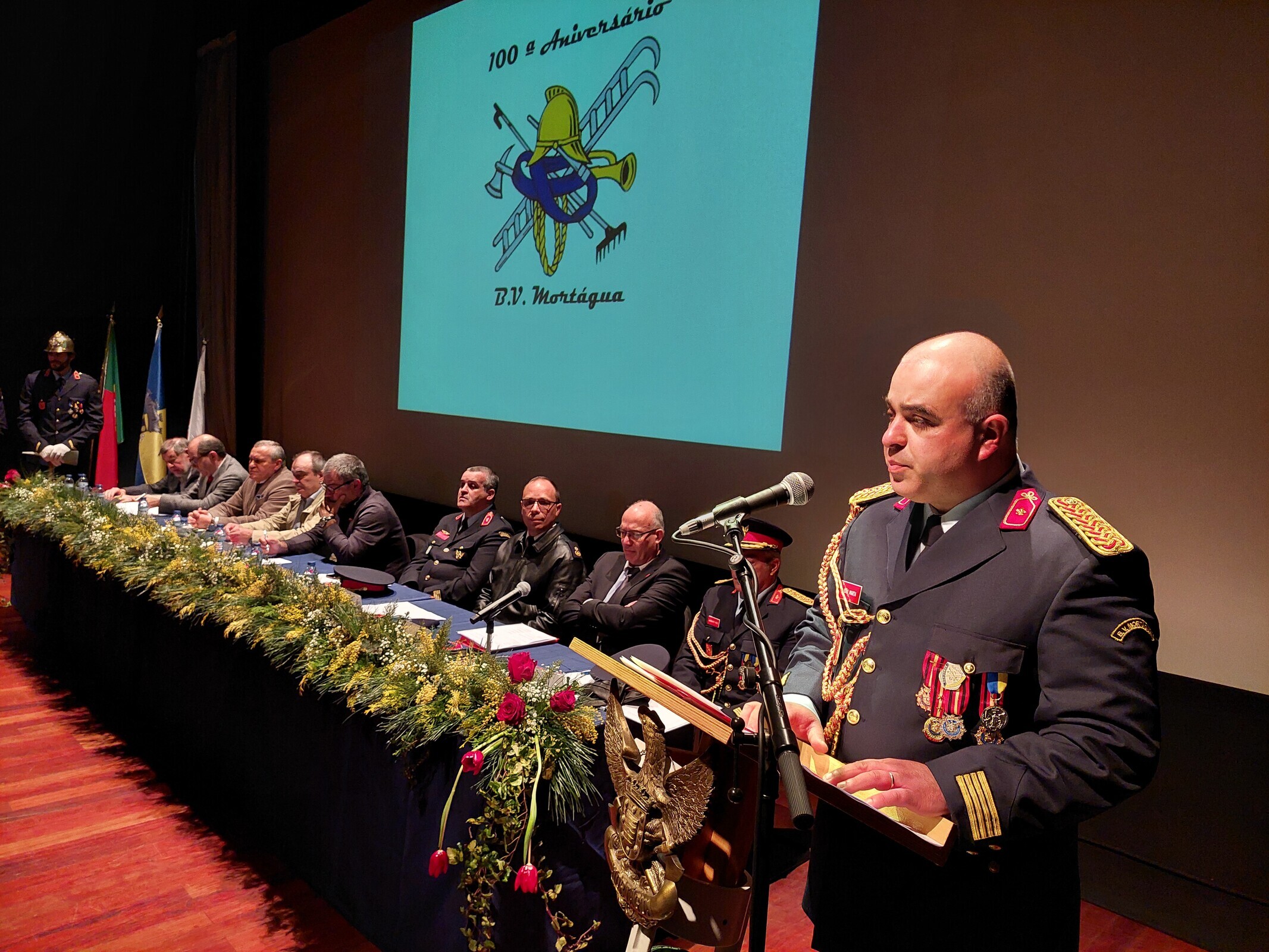 A Mesa de Honra que presidiu à tomada de posse foi constituída pelo Presidente da Assembleia Geral dos Bombeiros, Celso Portugal, Presidente da Câmara Municipal, Ricardo Pardal, Vice-Presidente do Conselho Executivo da Liga Portuguesa dos Bombeiros Portugueses, Comandante Emanuel Santos, Presidente da Assembleia Municipal, Acácio Fonseca, 2º Comandante do Comando Sub-Regional de Emergência e Proteção Civil da Região de Coimbra, Nuno Seixas, Presidente da Direção da Federação dos Bombeiros do Distrito de Viseu, José Albuquerque, Presidente da Direção dos Bombeiros, Nélson Filipe, Presidente do Conselho Fiscal, Eurico Tomás, Comandante em suplência dos B.V.M., Alexandre Porto.