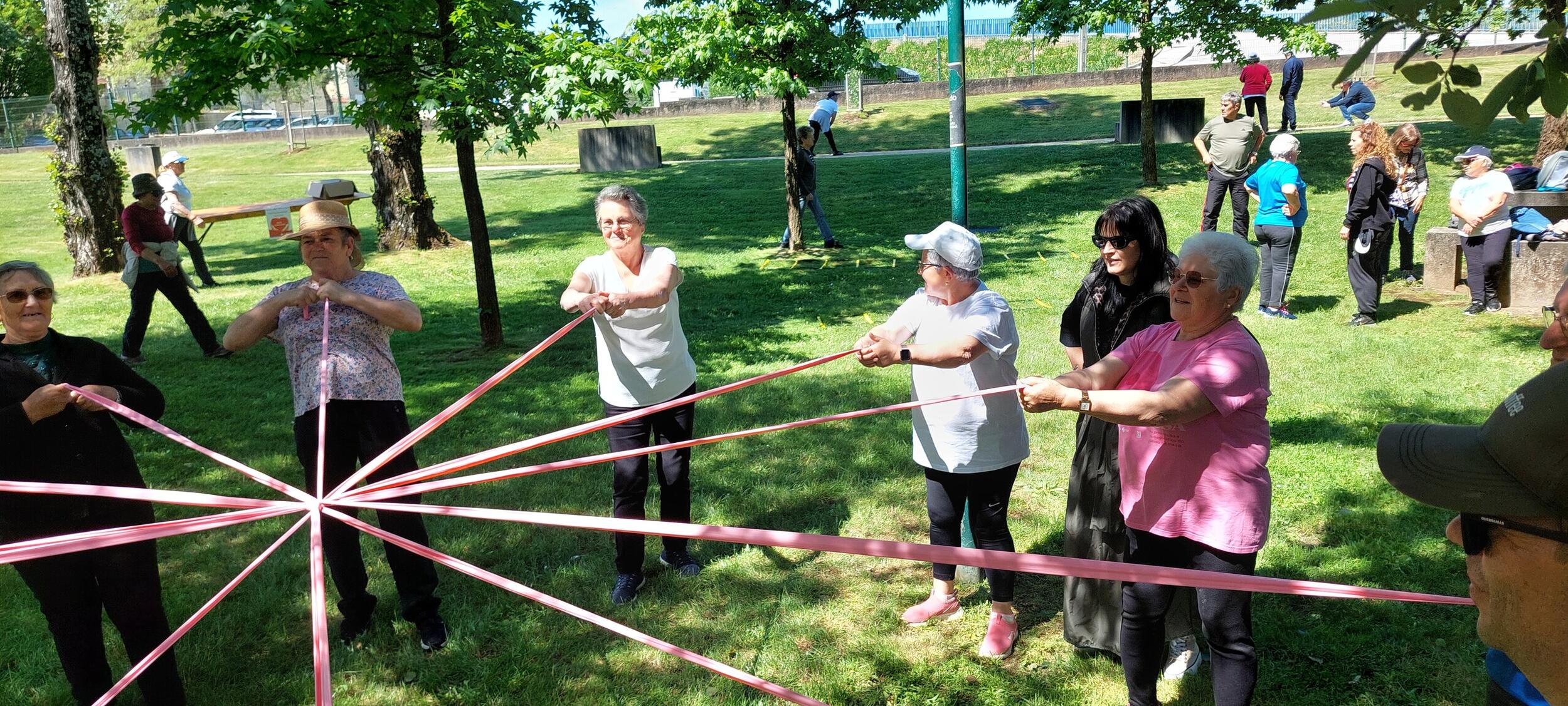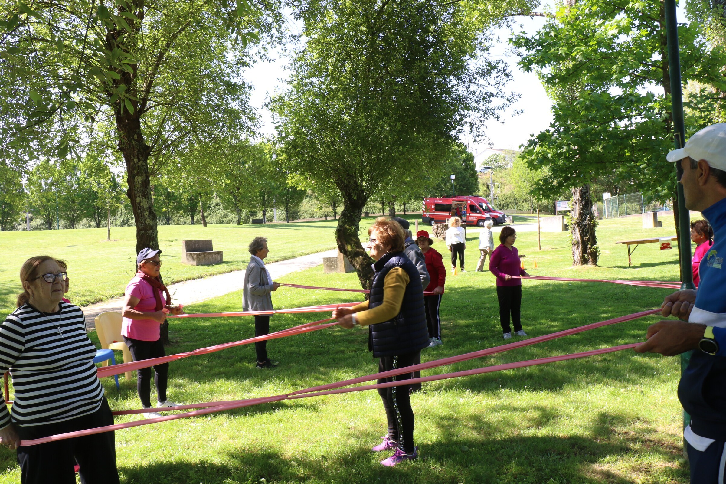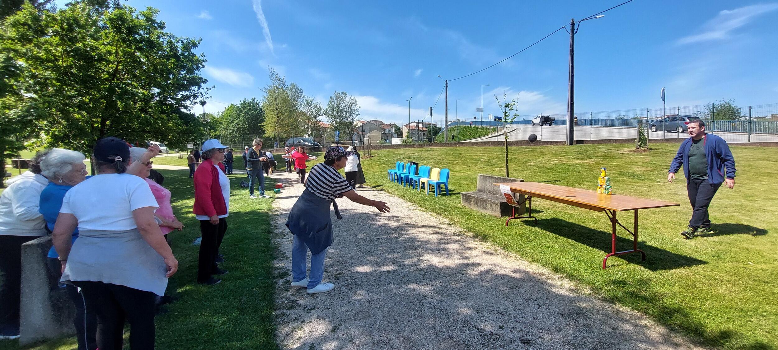 No Parque Verde estava instalado um circuito de “estações” de atividades físicas, constituído por treino funcional e jogos tradicionais, com os participantes a circularem rotativamente entre as várias “estações”, permitindo assim a todos usufruírem das várias atividades.