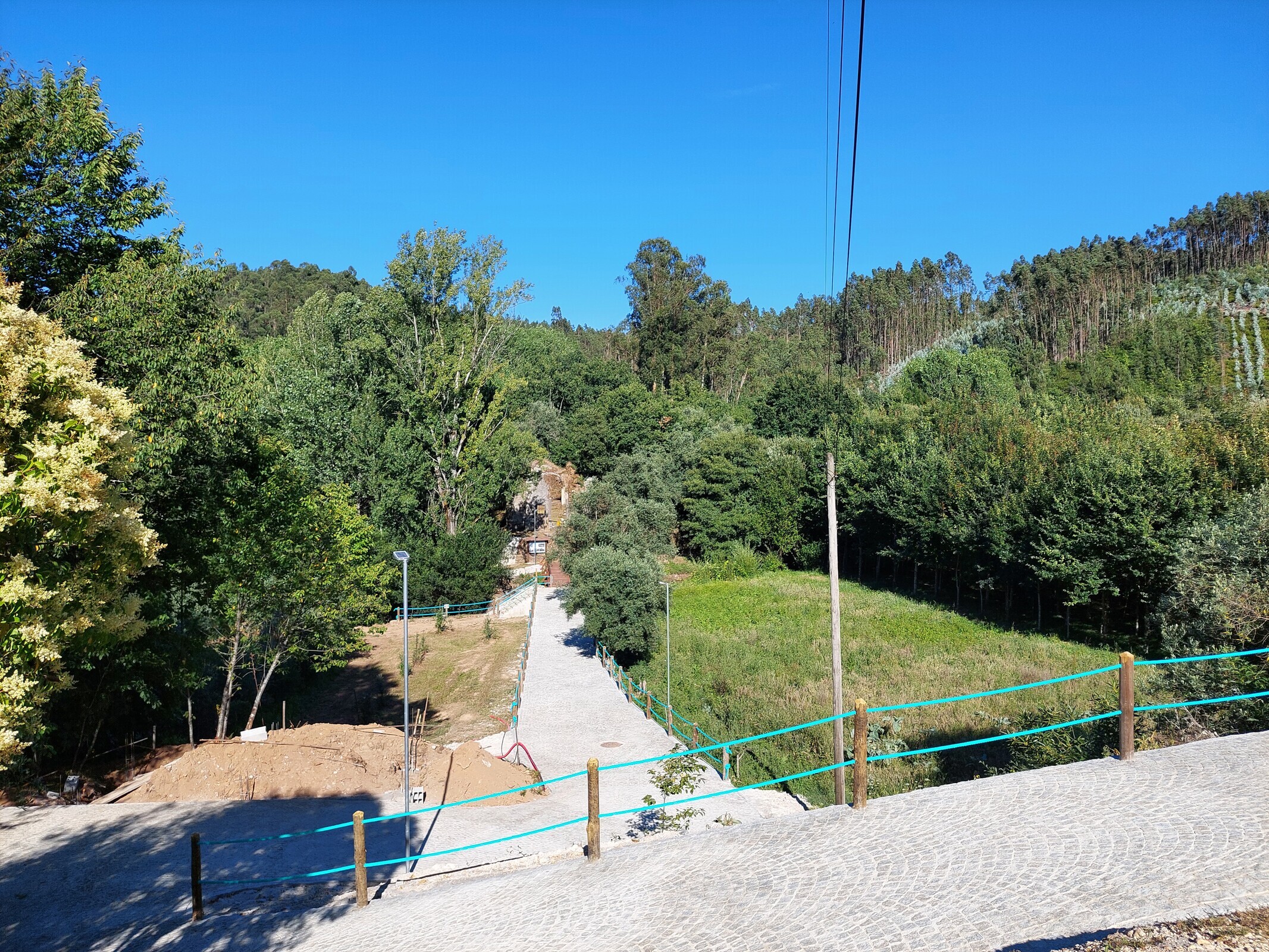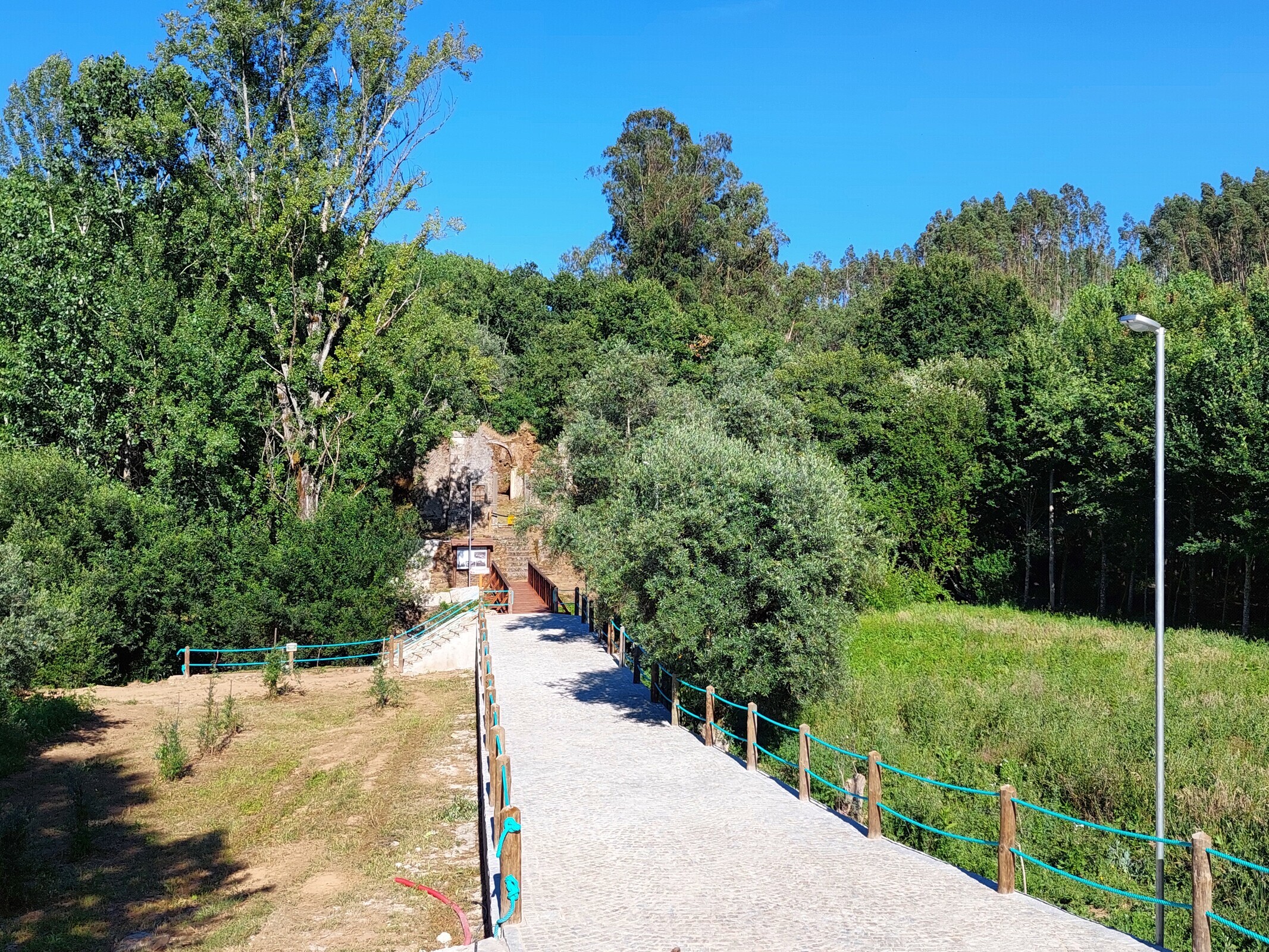 Uma parte significativa da intervenção geral já foi executada, como a melhoria dos acessos, a regularização do piso do percurso nalguns pontos (mantendo o seu estado natural e permitindo o acesso a pessoas que tenham menos mobilidade), a construção de um novo pontão sobre a ribeira, a colocação de iluminação e de sinalética. Foi também iniciada a construção de instalações sanitárias no acesso poente (lado da estrada principal).