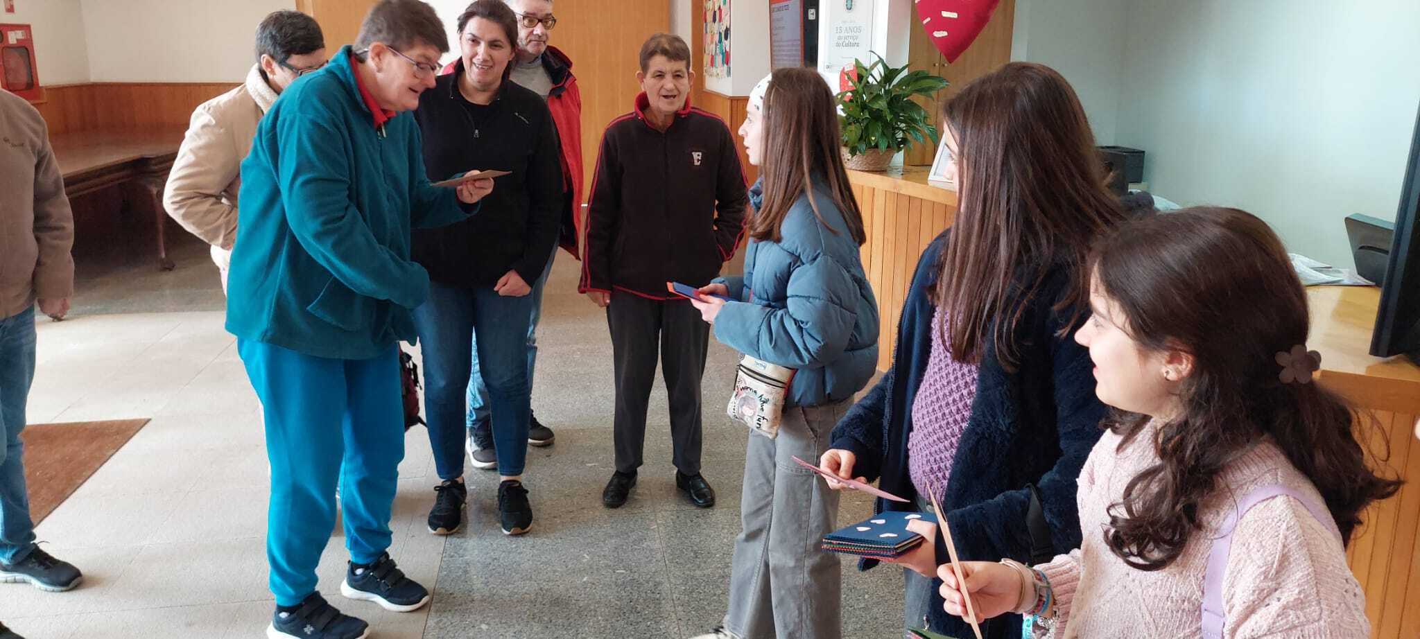 À entrada para a sala, as crianças e jovens do Centro de Atividades de Tempos Livres (CATL) da Cáritas Diocesana de Coimbra, distribuíram postais feitos pelos próprios, com mensagens que continham palavras como amizade, amor, empatia, felicidade, tolerância, partilha, otimismo, solidariedade, ou ajudar, proteger e cuidar.