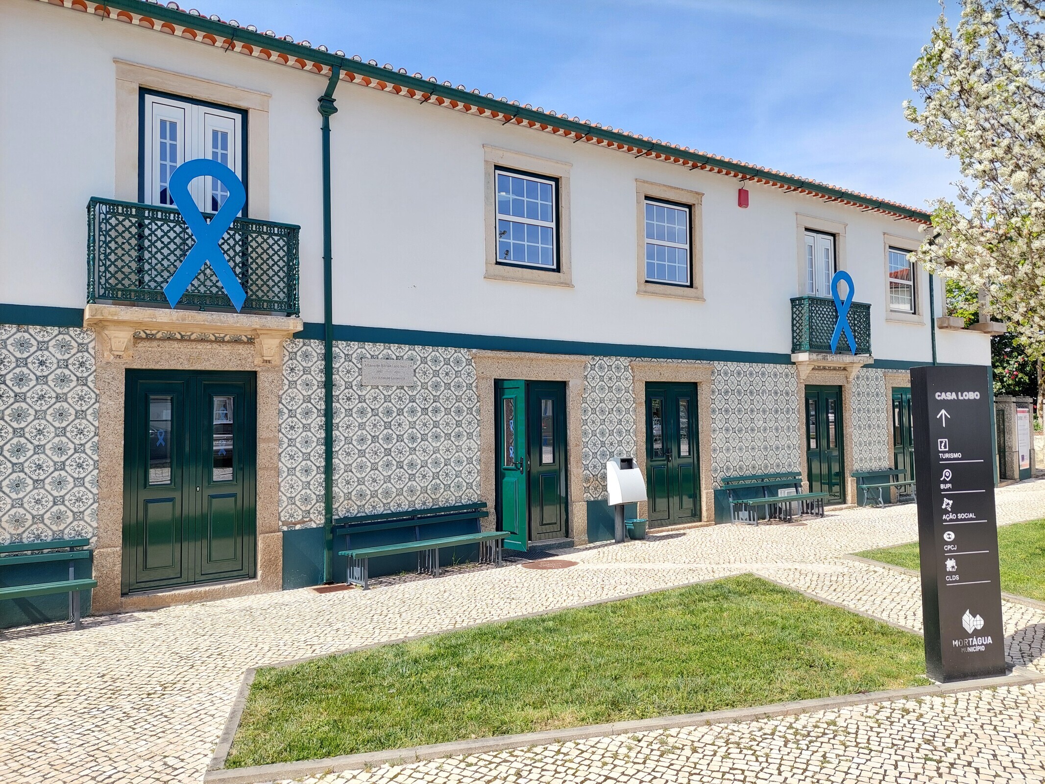 As crianças do Pré-Escolar e do 1º Ciclo da Escola Básica Dr. Afonso Abrantes vão participar na formação de um Laço Azul Humano. A iniciativa irá também realizar-se no Jardim-Escola João de Deus. A iluminação da fachada do edifício dos Paços do Concelho com a cor azul, é outra das ações simbólicas que assinalam a data.