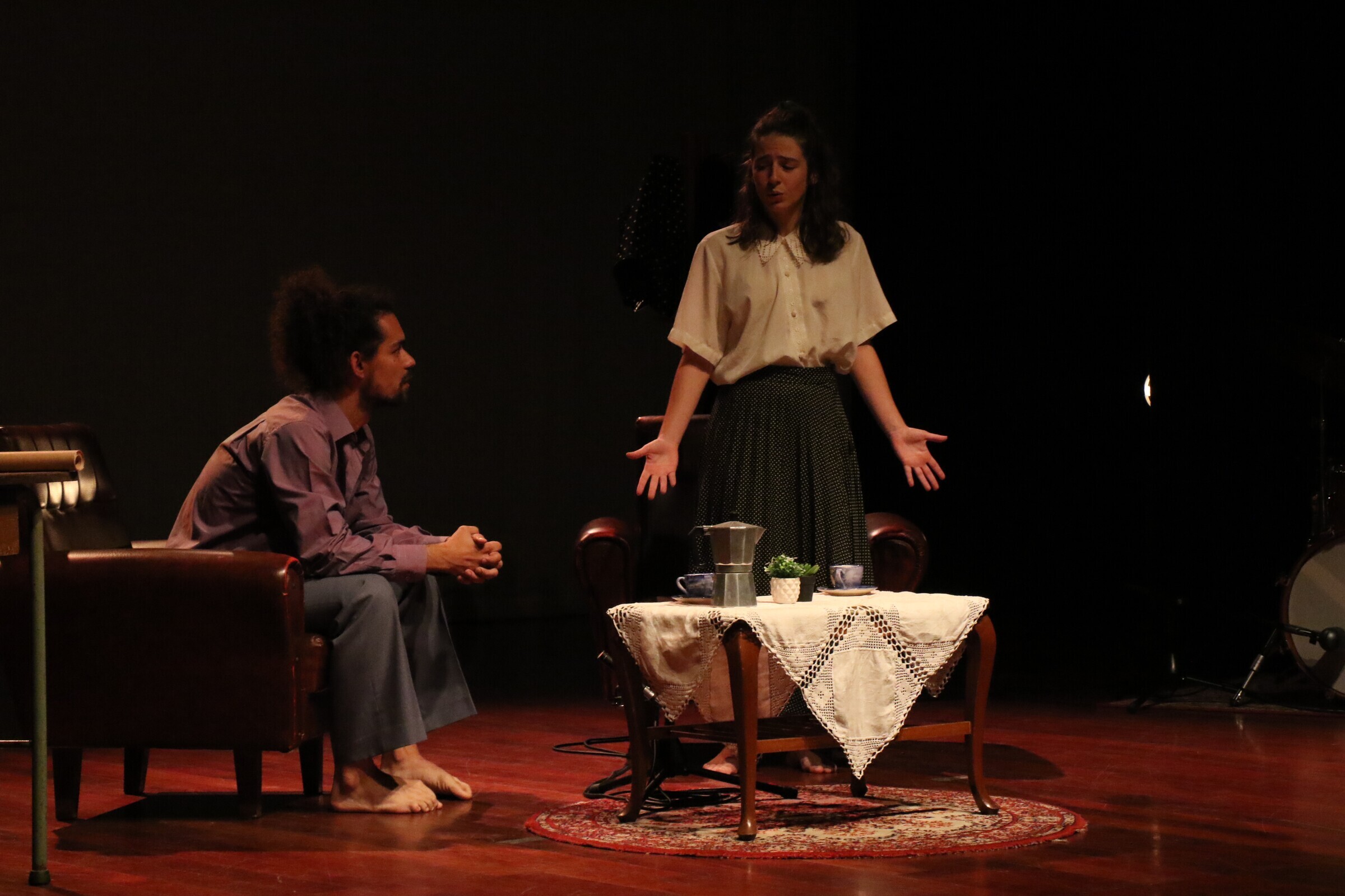 Em palco, Beatriz Lourenço (natural de Mortágua) e Samuel Dias, criadores do projeto, partilham as suas frustrações e os sonhos de poderem criar a sua arte em liberdade, de se exporem plenamente, física, psicológica e intelectualmente, perante o público, sem a autocensura imposta pelas regras do regime em nome de uma suposta moral e ordem social.