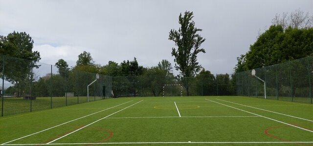 Parque Verde. Executado arrelvamento sintético do Campo Polidesportivo.